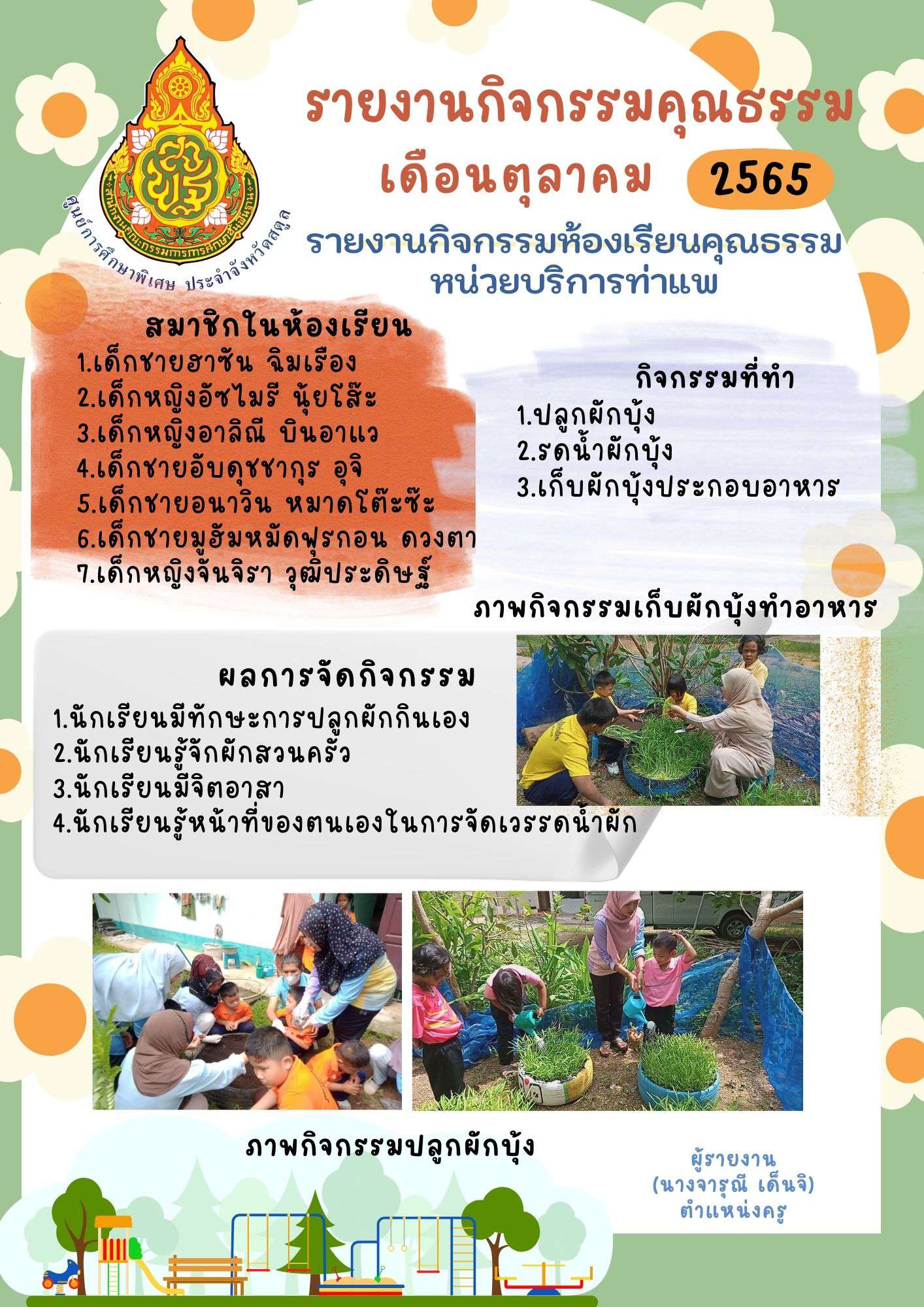 รายงานกิจกรรมคุณธรรมประจำเดือน ตุลาคม